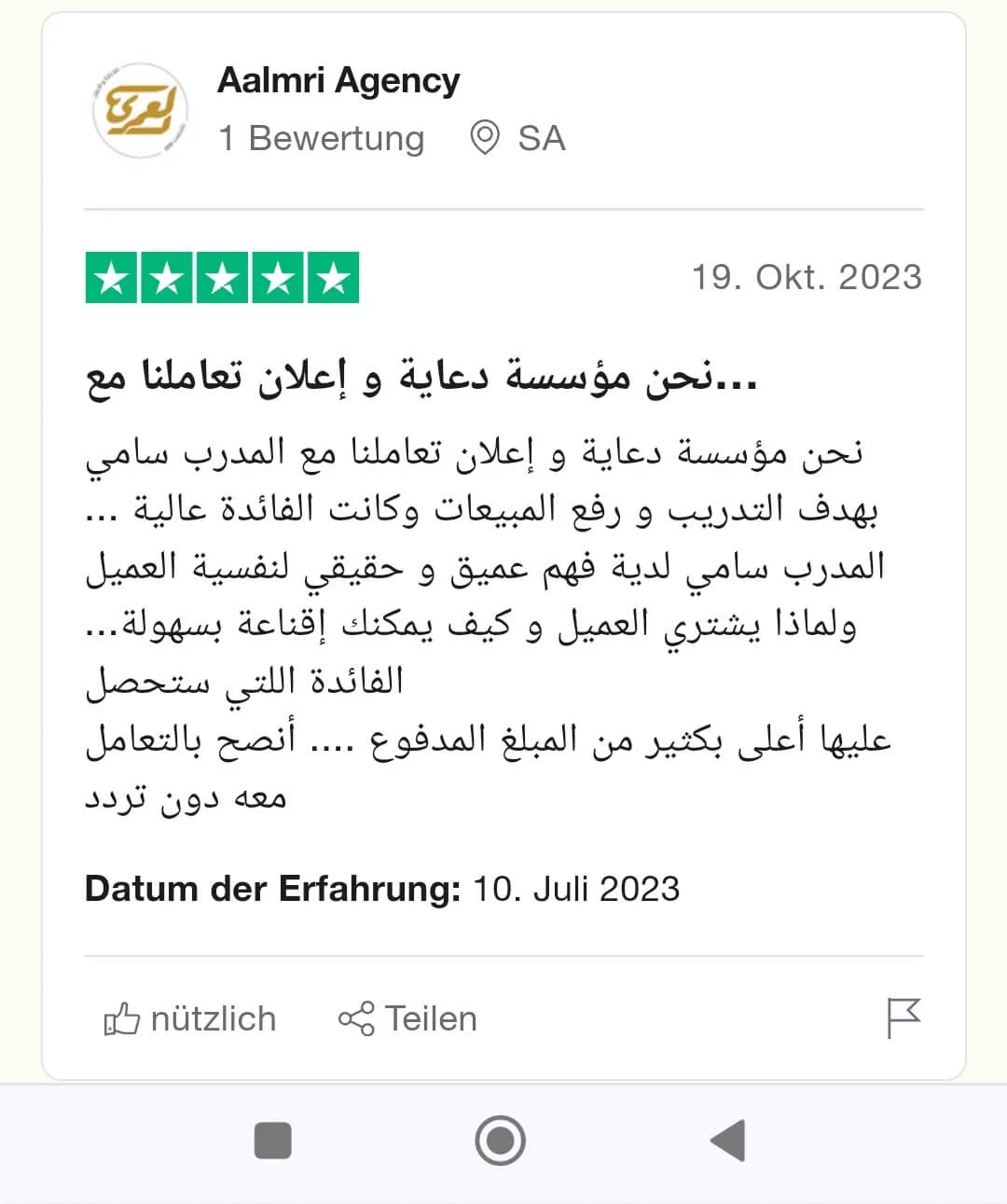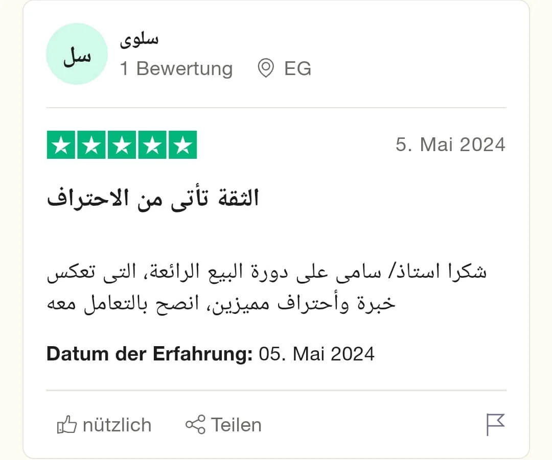 نحن مؤسسة دعاية و إعلان تعاملنا مع المدرب سامي بهدف التدريب و رفع المبيعات وكانت الفائدة عالية ... المدرب سامي لدية فهم عميق و حقيقي لنفسية العميل ولماذا يشتري العميل و كيف يمكنك إقناعة بسهولة... الفائدة اللتي ستحصل عليها أعلى بكثير من المبلغ المدفوع .... أنصح بالتعامل معه دون تردد